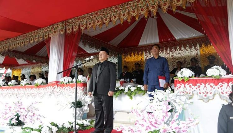 BERANDAKOTA—Wakil Wali Kota Kotamobagu, Nayodo Koerniawan, SH bertindak sebagai Inspektur Upacara pada pelaksanaan Upacara peringatan Hari Pahlawan Tahun 2022 dilingkungan Pemerintah Kota Kotamobagu, yang dilaksanakan di Lapangan Olahraga Kelurahan Motoboi Kecil, Kamis (11/10).