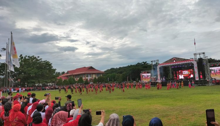 BERANDAKOTA – Wali Kota Kotamobagu Ir Tatong Bara bersama jajaran pejabat di lingkungan OPD Pemkot Kotamobagu, hadir dalam acara pembukaan Pekan Olahraga Provinsi (Porprov) ke XI di Kabupaten Bolaang Mongondow Senin (14/11).