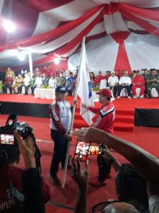 Yang menariknya dalam kegiatan ini dihiasi dengan atraksi terjun payung dari Atlet Sulut Pingkan Mandagi dan Tim TNI AU.
