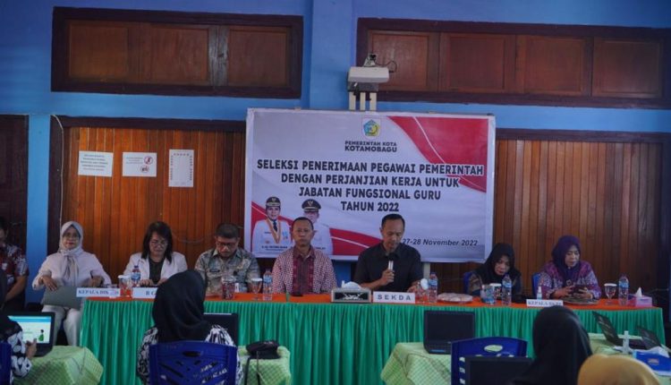 BERANDAKOTA – Sekretaris Daerah Kota Kotamobagu, Sofyan Mokoginta, SH., membuka secara resmi pelaksanaan Seleksi Penerimaan Pegawai Pemerintah dengan Perjanjian Kerja (P3K) untuk Jabatan Fungsional Guru Tahun 2022 di lingkungan Pemerintah Kota Kotamobagu, Minggu (27/11), di SMP Negeri 1 Kotamobagu, Jalan Arief Rahman Hakim, Kotamobagu.