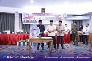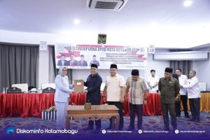 BERANDAKOTA – Rapat Paripurna DPRD Kota Kotamobagu dalam rangka Pembicaraan Tingkat II Pengambilan Persetujuan terhadap Rancangan Angggaran Pendapatan Belanja Daerah (APBD) Kota Kotamobagu Tahun Anggaan 2023, Rabu (30/11/2022) malam, di Ballroom Paloko Hotel Sutanraja, menjadi rapat paripurna terakhir pemerintahan TBNK dalam pembahasan APBD Pemerintah Kota Kotamobagu.