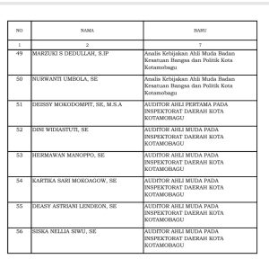Berikut daftar nama pejabat fungsional Pemkot Kotamobagu yang dilantik: