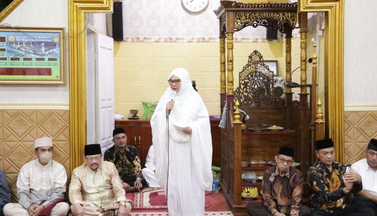 BERANDAKOTA—Wali Kota Kotamobagu, Ir. Hj. Tatong Bara menghadiri pelantikan pengurus Badan Kontak Majelis Taklim (BKMT) Permata se – Kecamatan Kotamobagu Timur Periode 2022 – 2027, dan doa bersama dalam rangka menyongsong bulan suci Ramadhan 1444 Hijriah, Minggu (19/3).