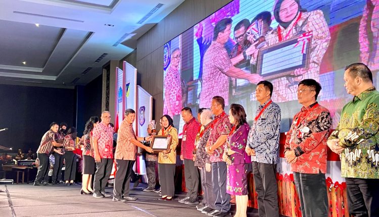 BERANDAKOTA— Wali Kota Kotamobagu, Ir. Hj. Tatong Bara menerima penghargaan sebagai Terbaik 2 Pembangunan Daerah (PPD) dan penghargaan sebagai Terbaik 3 Sulut Sensanitasional Award Kategori Sanitasi Aman Tahun 2023 untuk tingkat Kota se – Provinsi Sulawesi Utara, Kamis (27/4).