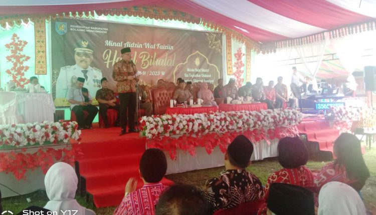 Pada kesempatan itu, Bupati mengajak dimomen halal bihalal ini dijadikan sebagai wahana dan sarana untuk lebih memperkuat komitmen dan tekad kita, guna lebih meningkatkan kualitas Ta’aruf atau saling mengenal dan Tafahum atau saling memahami. Ini tentu guna meningkatkan hubungan jalinan silaturahmi diantara kita semuanya. Karena dengan itu, sangat dibutuhkan mempererat jalinan sinergi. Ini dalam rangka mewujudkan keberhasilan penyelenggaraan pemerintahan dikabupaten Bolmong yang sama – sama kita cintai.