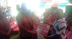 Usai sambutan Bupati dilanjutkan, penyerahan hadiah Monuntul kepada pemenang, dengan hadiah berupa trophy dan uang. (Advetorial).