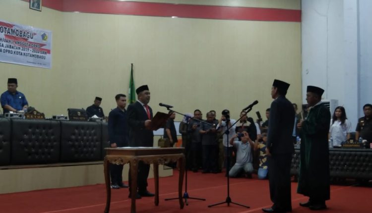 Pengucapan sumpah dan janji Anggota DPRD PAW ini dilaksanakan di ruang sidang paripurna DPRD Kotamobagu, Senin (8/5).