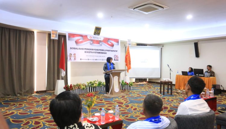 BERANDAKOTA—Wali Kota Kotamobagu, Ir. Hj. Tatong Bara menghadiri kegiatan Sosialisasi pengawasan Pemilihan Umum (Pemilu) Partisipatif di Kota Kotamobagu yang dihadiri langsung Anggota Badan Pengawas Pemilu (Bawaslu) Republik Indonesia, Lolly Suhenti, S.Sos., M.H., Kamis (11/5).