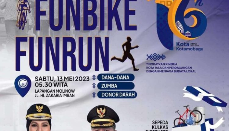 Salah satu rangkaian kegiatan yakni, FunBike dan FunRun yang di laksanakan besok Sabtu 12 Mei 2023, bertempat di lapangan olahraga Kelurahan Molinow Kecamatan Kotamobagu Barat.