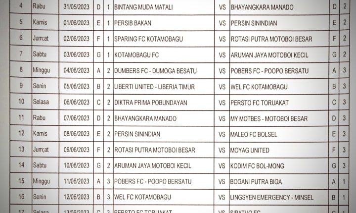 “Untuk pertandingan hari ini di grup D, akan berhadapan antara Bintang Muda Matali (BMM) yang tidak lain Tuan rumah dengan Bhayangkara Manado, di lapangan Nunuk Matali,” ucap Kepala Bidang Olahraga Hendra Mokoagow Rabu (31/5/2023).