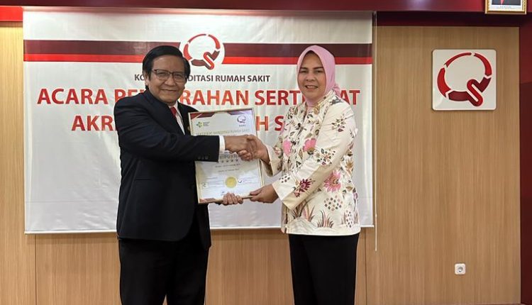 BERANDAKOTA—Wali Kota Kotamobagu, Ir. Hj. Tatong Bara menerima sertifikat Akreditasi Rumah Sakit Umum Daerah (RSUD) Kota Kotamobagu sebagai Rumah Sakit dengan predikat Akreditasi Paripurna dari Komisi Akreditasi Rumah Sakit (KARS), Senin (31/7).