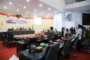 Rapat tersebut dipimpin langsaung oleh Ketua DPRD Kotamobagu Meiddy Makalalag ST, Wakil Ketua DPRD Kota Kotamobagu, Herdy Korompot, S.E., Wakil Ketua DPRD Kota Kotamobagu,Syarifuddin. J. Mokodongan, S.H, dan dihadiri seluruh Forkopimdan dan Pimpinan OPD Pemkot Kotamobagu.