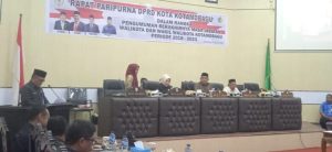 BERANDAKOTA – Dewan Perwakilan Rakyat Daerah Kotamobagu (DPRD) Kota Kotamobagu gelar Rapat Paripurna dalam rangka Pengumuman berakhirnya masa jabatan Walikota dan Wakil Walikota Kotamobagu Periode 2018 – 2023 bertempat di ruang sidang paripurna kantor DPRD Kotamobagu, Kamis (24/09).