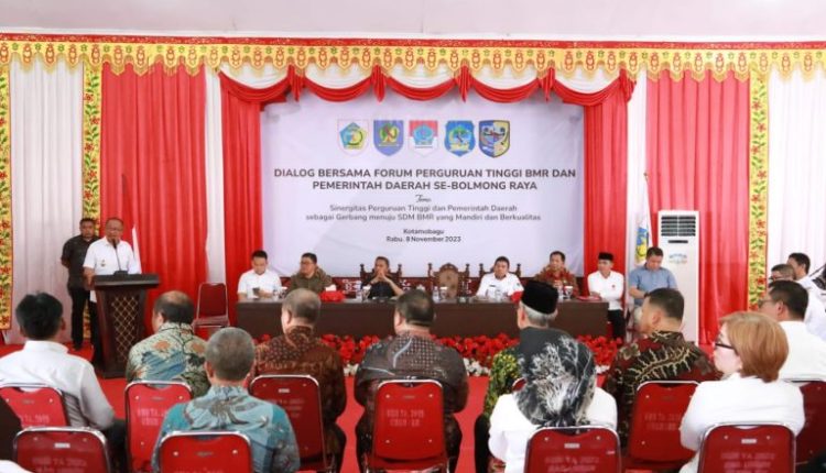 BERANDAKOTA – Pj Wali Kota Kotamobagu, Asripan Nani buka acara dialog bersama Forum Perguruan Tinggi BMR bersama Pemerintah Daerah se Bolaang Mongondow Raya, Rabu (8/11).