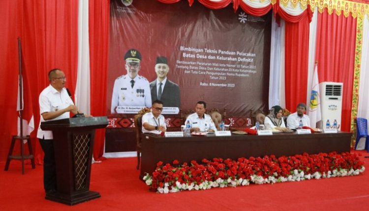 BERANDAKOTA – Pj. Wali Kota Dr. Drs. Hi. Asripan Nani, M.Si. membuka kegiatan Bimbingan Teknis (Bimtek) bertujuan untuk memandu para pemangku kepentingan dalam pelacakan batas desa dan kelurahan definitif, serta tata cara pengumpulan nama rupabumi tahun 2023, berdasarkan Peraturan Wali Kota Kotamobagu Nomor 10 Tahun 2023 tentang Batas Desa dan Kelurahan.