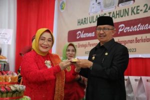 “Saya mengajak seluruh anggota Dharma Wanita Persatuan di daerah ini untuk mengingat landasan awal terbentuknya organisasi tersebut yaitu memberikan ruang bagi perempuan untuk berhimpun, saling belajar, dan mengembangkan diri guna memberikan kontribusi nyata bagi kemajuan keluarga dan masyarakat,” pungkasnya.