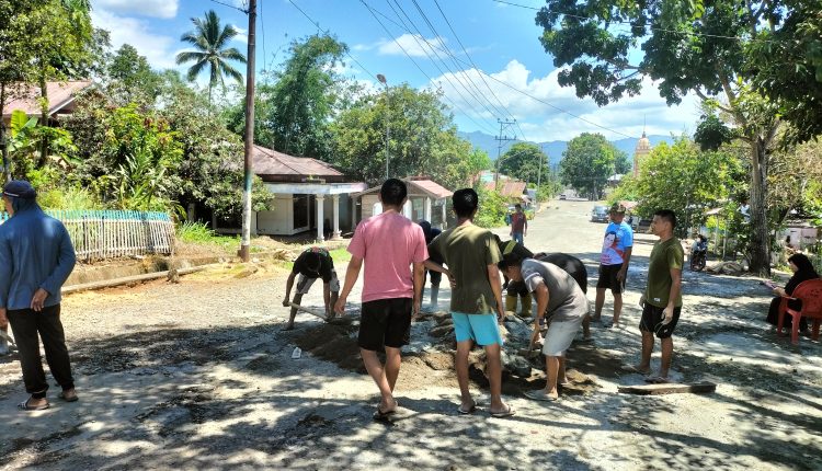 Warga Desa Bilalang Gotong Royong Perbaiki Jalan AP Mokoginta
