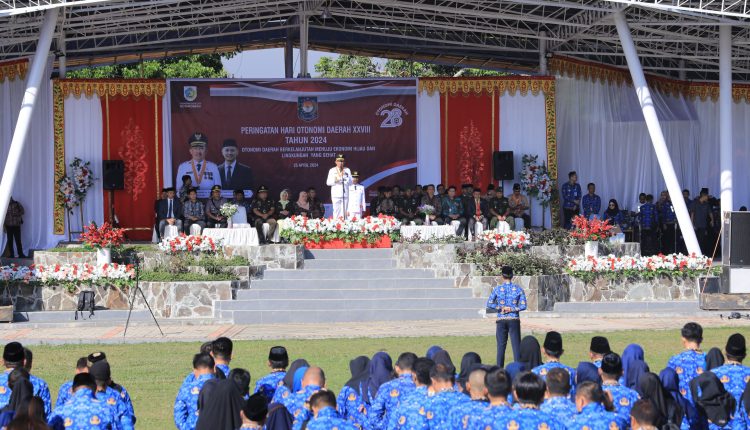 Dalam sambutannya, beliau membacakan arahan Menteri Dalam Negeri Republik Indonesia, menegaskan tema peringatan Hari Otonomi Daerah ke-XXVIII ini, “Otonomi Daerah berkelanjutan Menuju Ekonomi Hijau dan Lingkungan yang Sehat”, sebagai komitmen untuk membangun keberlanjutan dalam pengelolaan sumber daya alam dan lingkungan hidup di tingkat lokal.