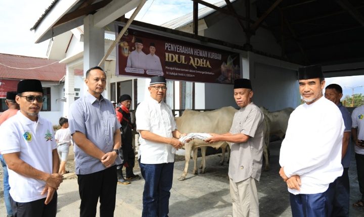 Lebih lanjut Yusrin menjelaskan bahwa 5 ekor hewan qurban tersebut akan diserahkan kepada 5 desa dan kelurahan di Kota Kotamobagu. “5 ekor hewan qurban tersebut diserahkan untuk 5 desa dan kelurahan yang ada di Kota Mobagu, yakni Kelurahan Mongkonai Barat, Kelurahan Kobo Kecil, Kelurahan Kotobangon, Kelurahan Sinindian, dan Desa Poyowa Besar Dua. Tadi diserahkan kepada para BTM dan didampingi Sangadi dan L