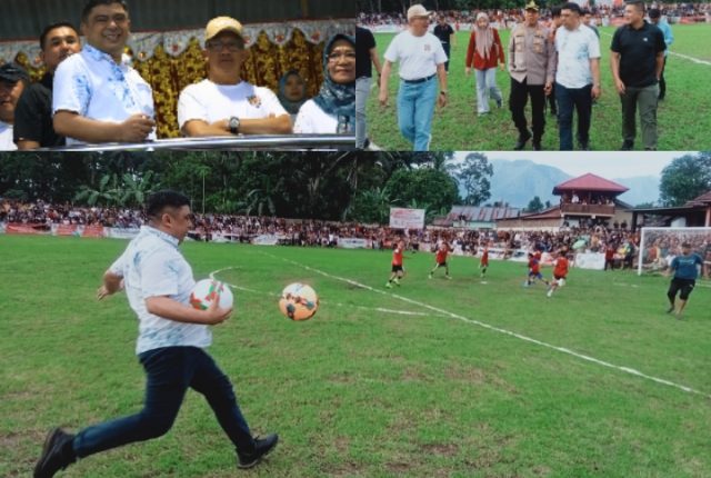 Selain itu, pantauan media ini, Ketua Askot PSSI Kotamobagu Meiddy Makalalag bersama Pj. Wali Kota Asripan Nani, Dandim 1303 Bolmong, Letkol Inf Fahmil Harris SIP, dan Kapolres Kotamobagu, AKBP Irwanto SIK MH, melakukan bagi-bagi bola kepada penonton yang hadir memadati stadion Motobatu Desa Poyowa Besar Dua.
