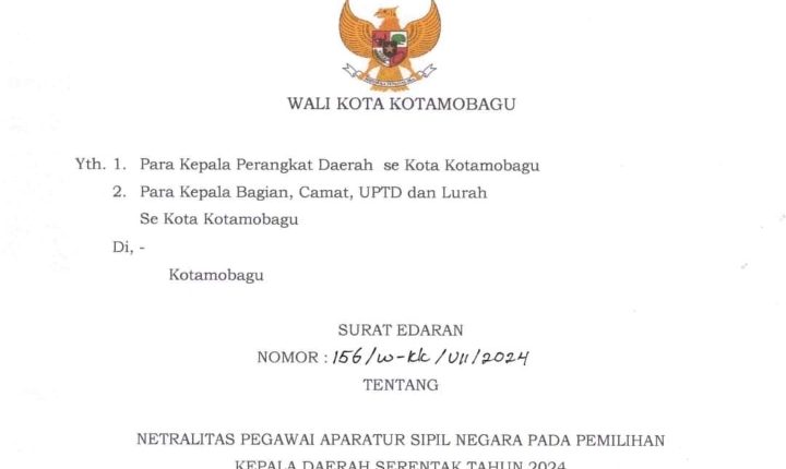 Dengan adanya surat edaran ini, diharapkan ASN di lingkungan Pemkot Kotamobagu dapat menjaga netralitas dan profesionalisme mereka selama proses Pilkada serentak 2024 berlangsung. **