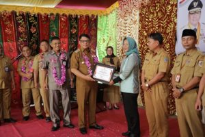 Dalam sambutannya, Pj Wali Kota memberikan apresiasi kepada seluruh sekolah yang menerima penghargaan.