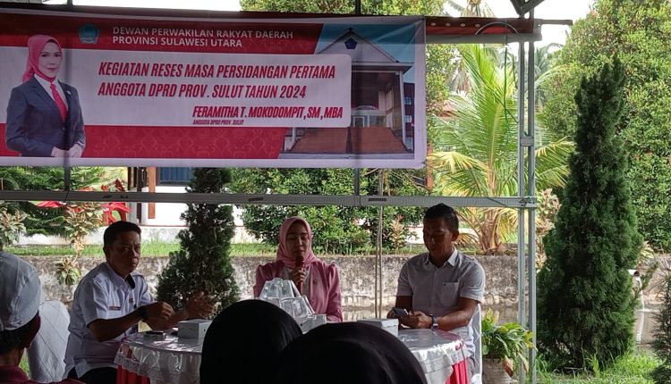 BERANDAKOTA — Anggota DPRD Provinsi Sulawesi Utara, Feramitha Tiffany Mokodompit, mengadakan kegiatan reses di Desa Kobo. Acara ini dihadiri oleh Lurah Desa Kobo, tokoh masyarakat, dan warga setempat.
