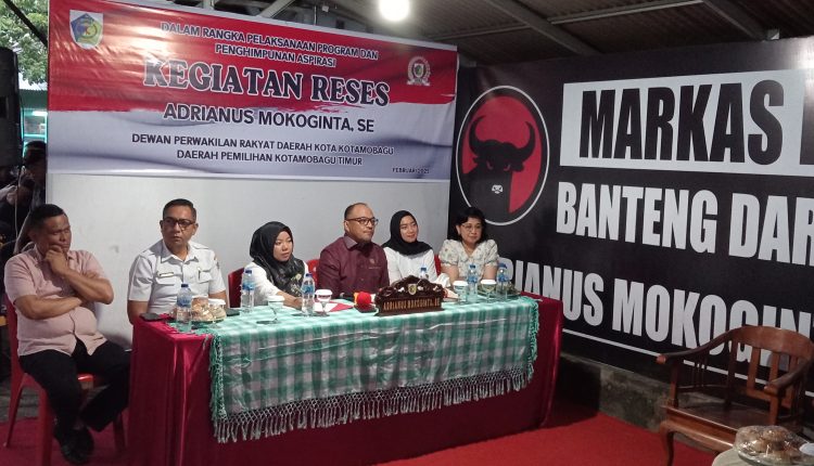 Kotamobagu, Berandakota – Ketua DPRD Kota Kotamobagu dari daerah pemilihan (Dapil) Kotamobagu Timur, Adrianus Mokoginta, SE, menggelar reses guna menyerap aspirasi masyarakat pada Rabu (26/2/2025).