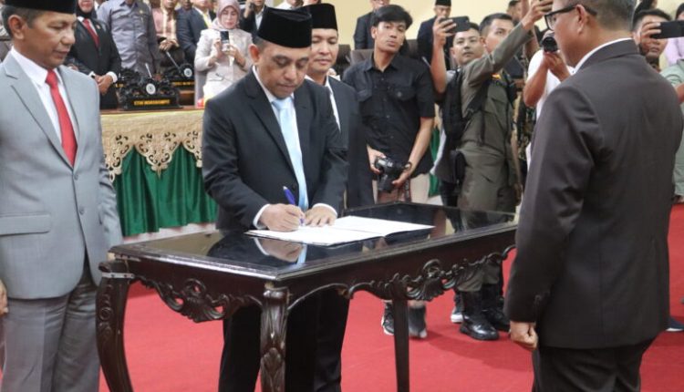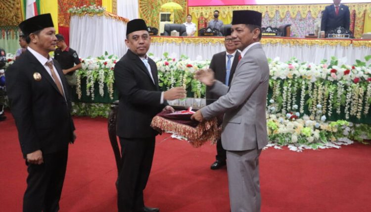 Kegiatan yang berlangsung di ruang rapat paripurna DPRD Bolmong ini dipimpin langsung oleh Ketua DPRD Tony Tumbelaka, didampingi Wakil Ketua Sulhan Manggabarani dan Febrianto Tangahu. Hadir dalam acara tersebut, Bupati Bolmong Yusra Alhabsyi dan Wakil Bupati Dony Lumenta, serta Penjabat (Pj) Bupati sebelumnya, dr. Jusnan C. Mokoginta, Rabu (5/2/2025).