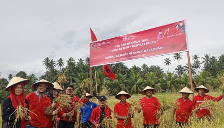 Berandakota, Kotamobagu– Dalam rangka memperingati Hari Tani Nasional 2025, PDI Perjuangan menggelar aksi nasional bertajuk “Turun ke Sawah Menyapa Petani” dengan tema besar “Indonesia yang Berdaulat di Bidang Pangan”, tema “Bumi Lestari, Petani Berdikari” dan sub-tema “Kembali ke Sawah, Menyemai Masa Depan.”