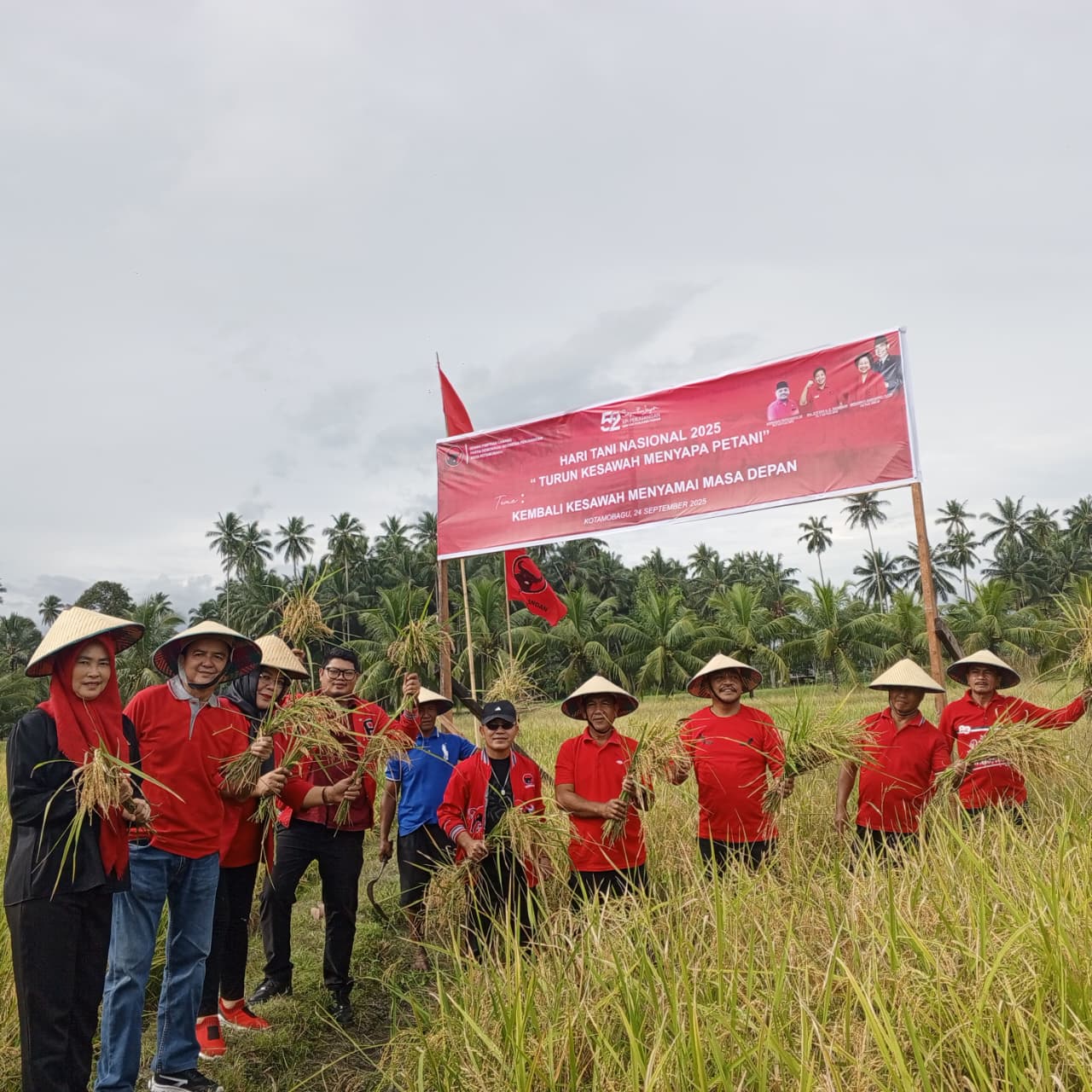 Kegiatan ini serentak dilaksanakan di seluruh Indonesia pada Rabu (24/9/2025). Di Kota Kotamobagu, jajaran kader partai dan simpatisan turun langsung ke sawah untuk bertemu para petani, ini menjadi bagian dari implementasi hasil Rakernas IV PDI Perjuangan yang mengangkat isu Kedaulatan Pangan sebagai agenda strategis partai, Rabu (24/09).