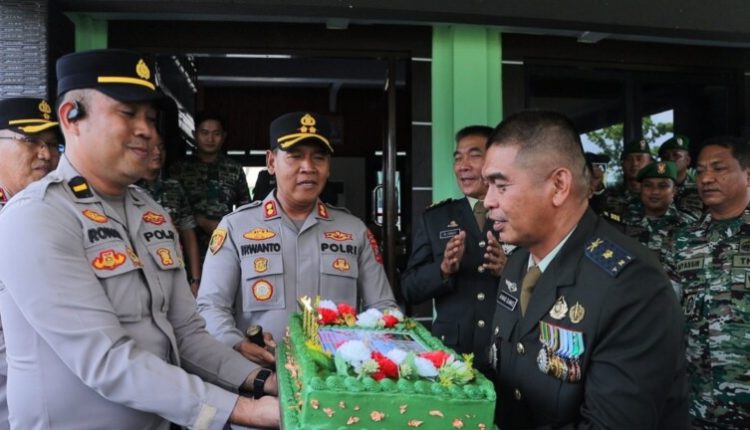Tanpa seremoni formal, suasana penuh keakraban langsung terasa. Kapolres menyerahkan tumpeng sembari menyampaikan ucapan selamat ulang tahun kepada seluruh jajaran TNI.
