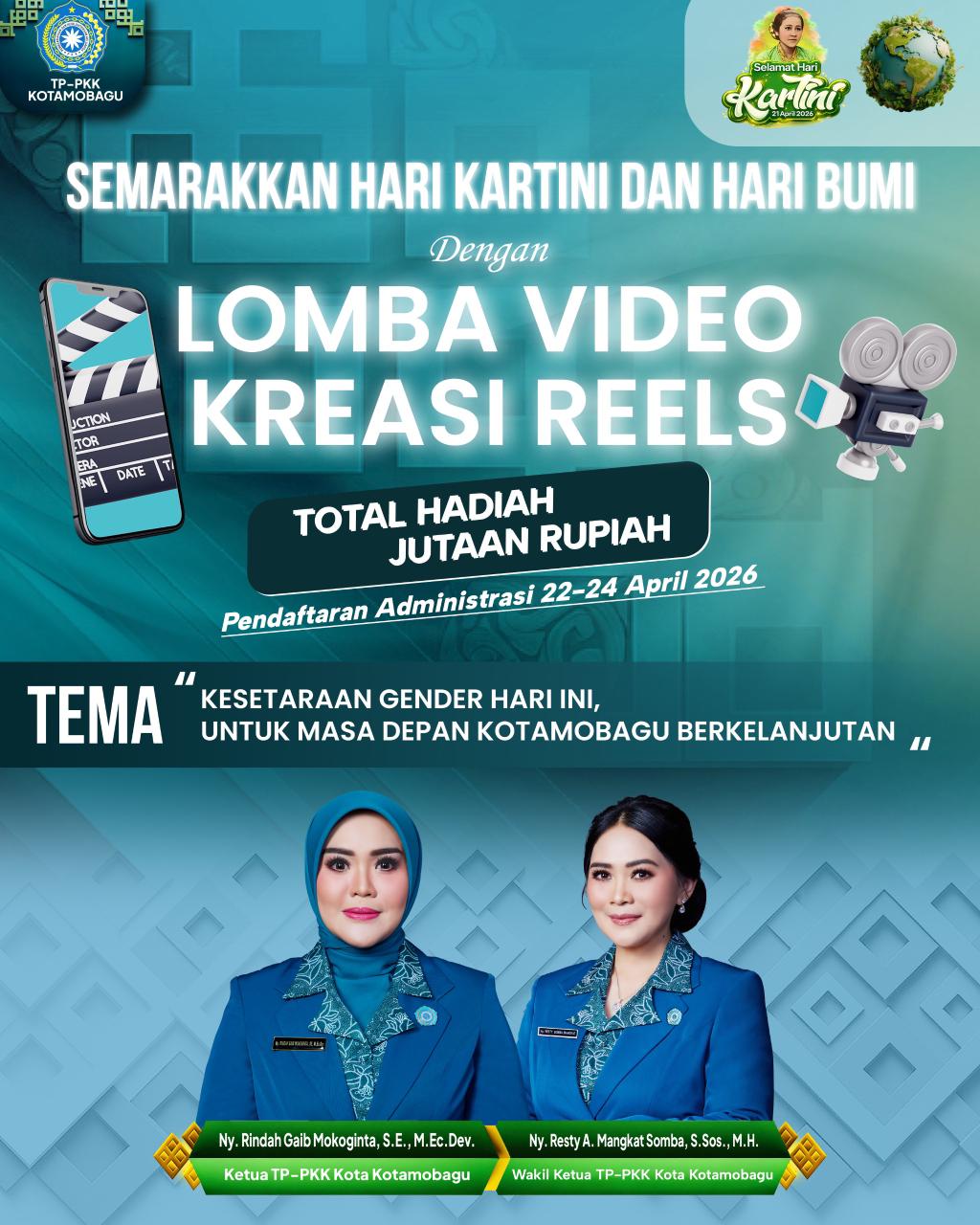 Berandakota Kotamobagu — Dalam rangka memperingati Hari Kartini dan Hari Bumi yang hanya berselisih satu hari, TP-PKK Kotamobagu menghadirkan program edukatif bagi masyarakat, khususnya perempuan, melalui kegiatan “Lomba Video Reels” bertema “Gender Equality Today for a Sustainable Tomorrow (Kesetaraan Gender Hari Ini untuk Masa Depan yang Berkelanjutan)”, Rabu (22/04).